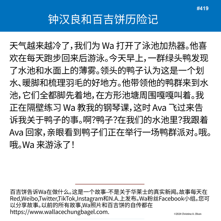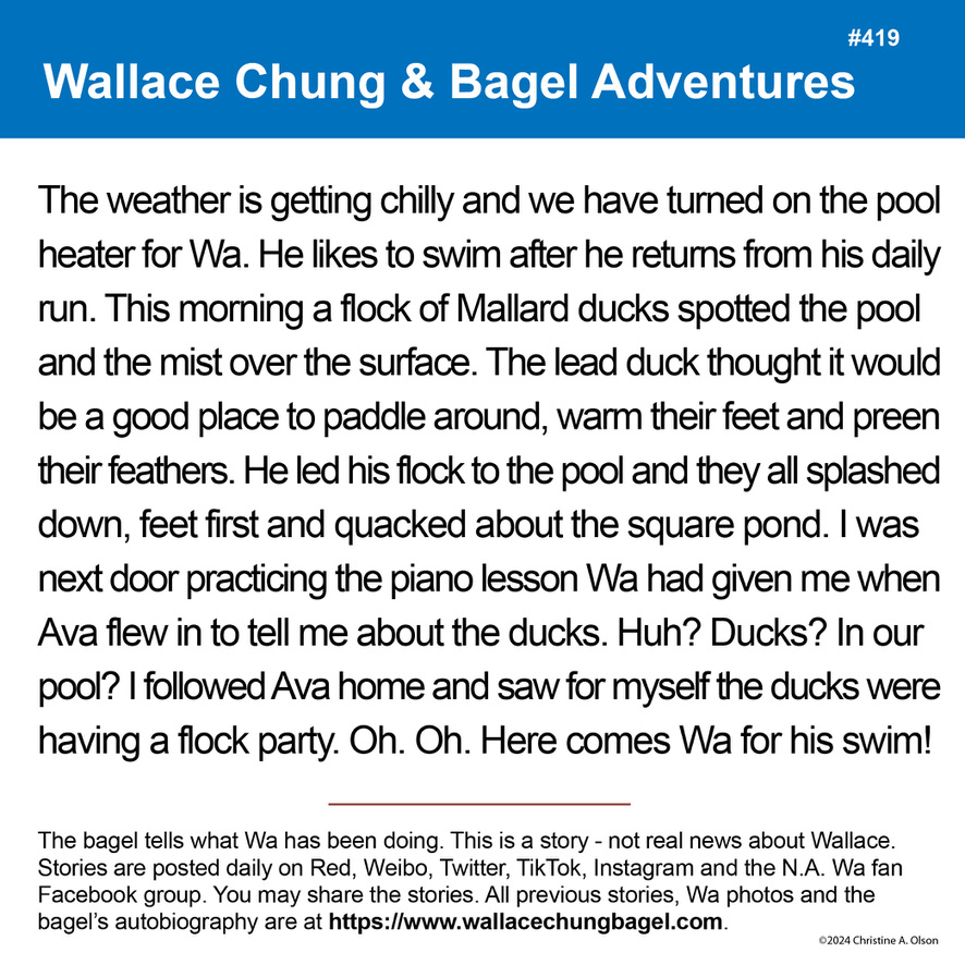 Wa swims with ducks! Wa 和鸭子一起游泳!