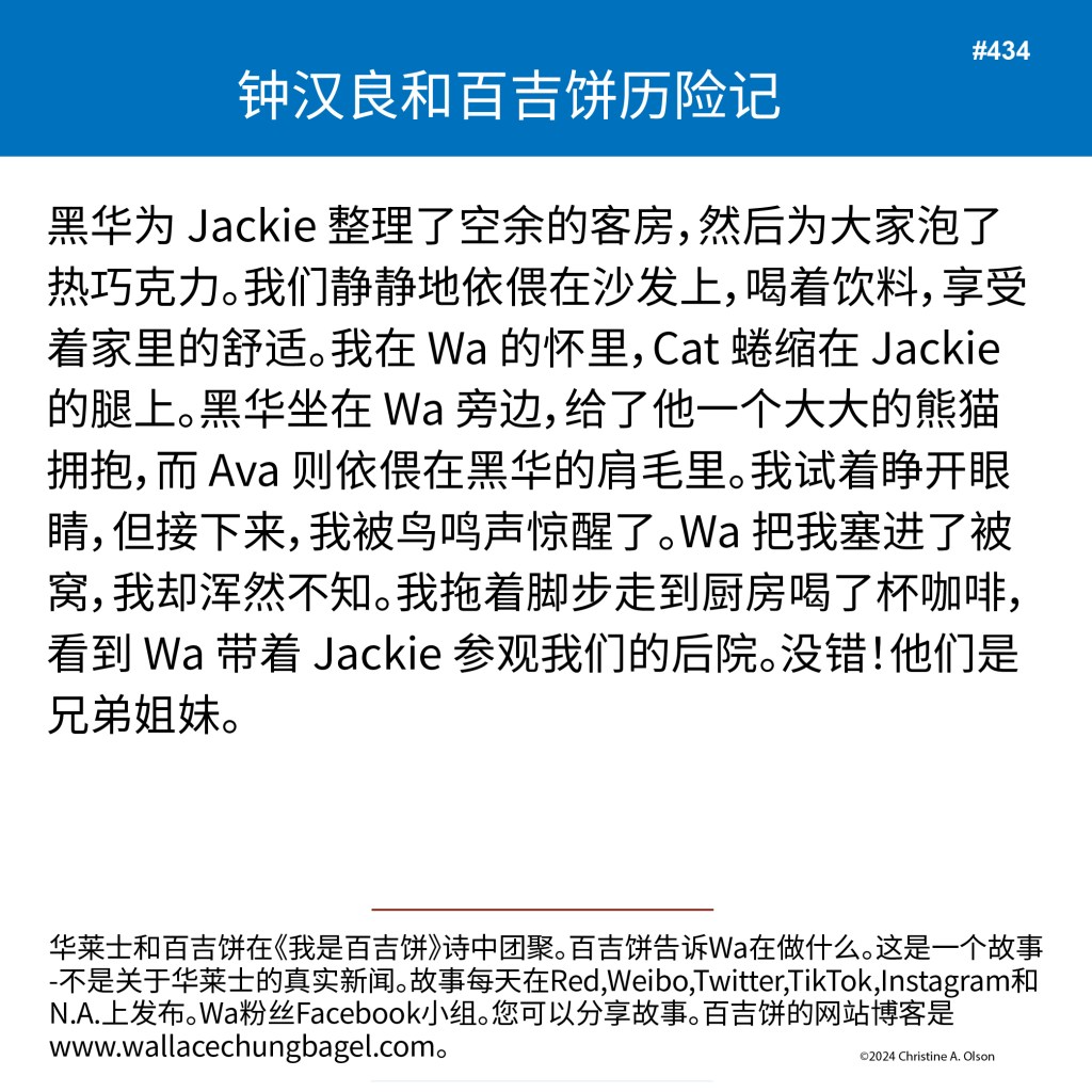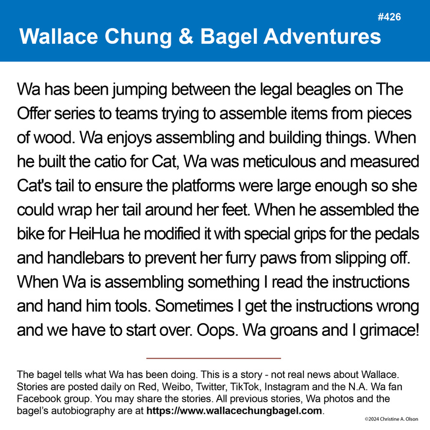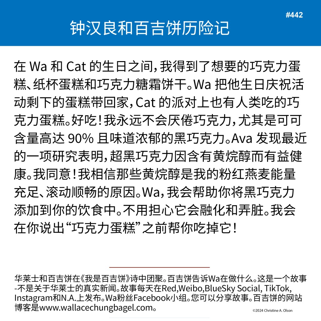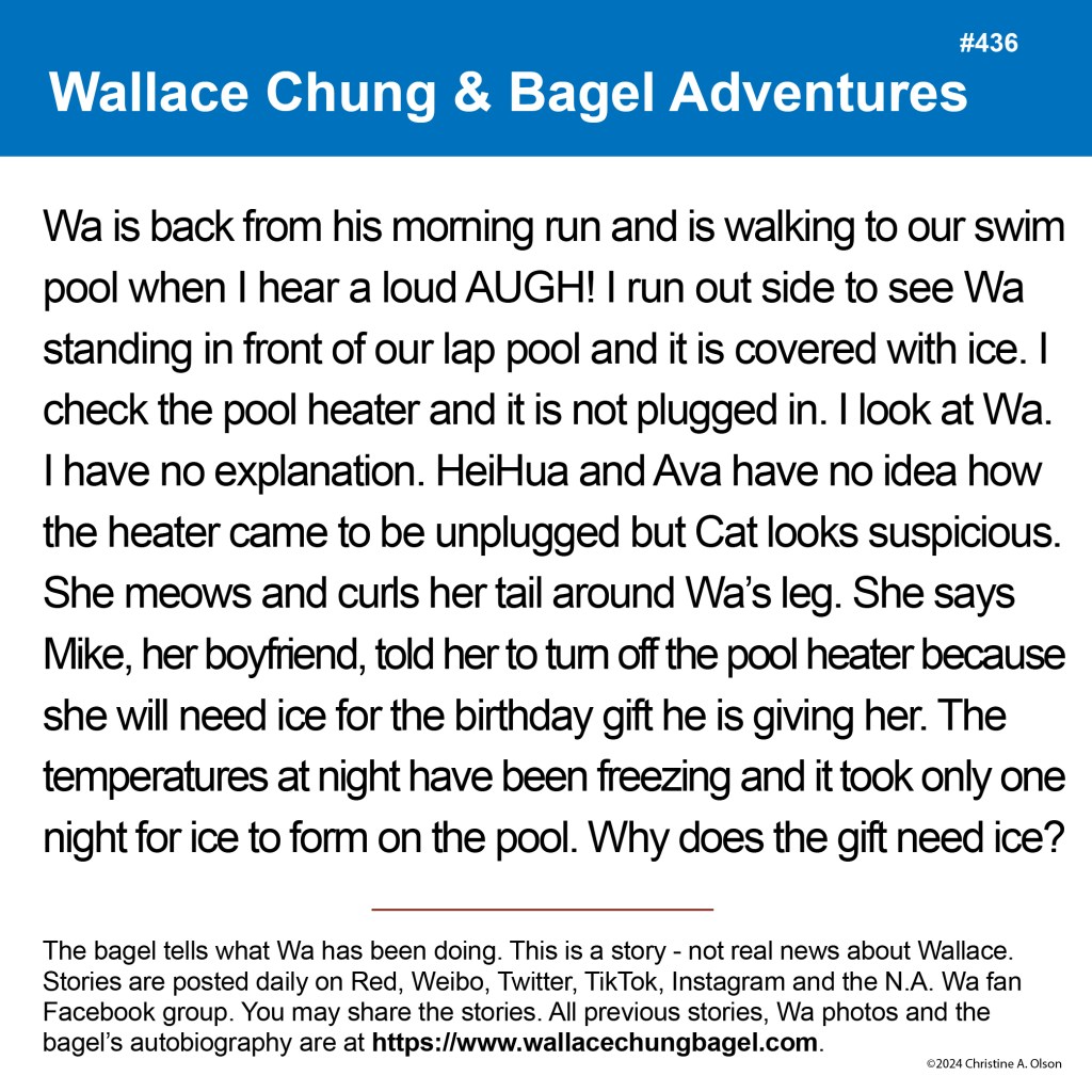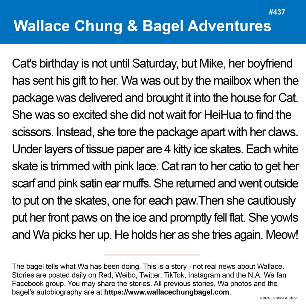 When I began writing the bagel stories, I did not illustrate them with a photograph of Wallace. It was not until story #7 that I began including a photo of Wa that served as the inspiration for the storyline.