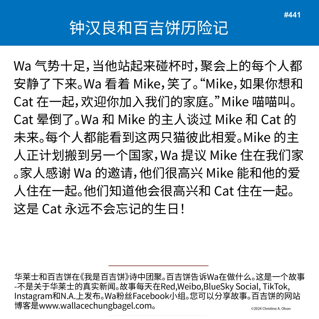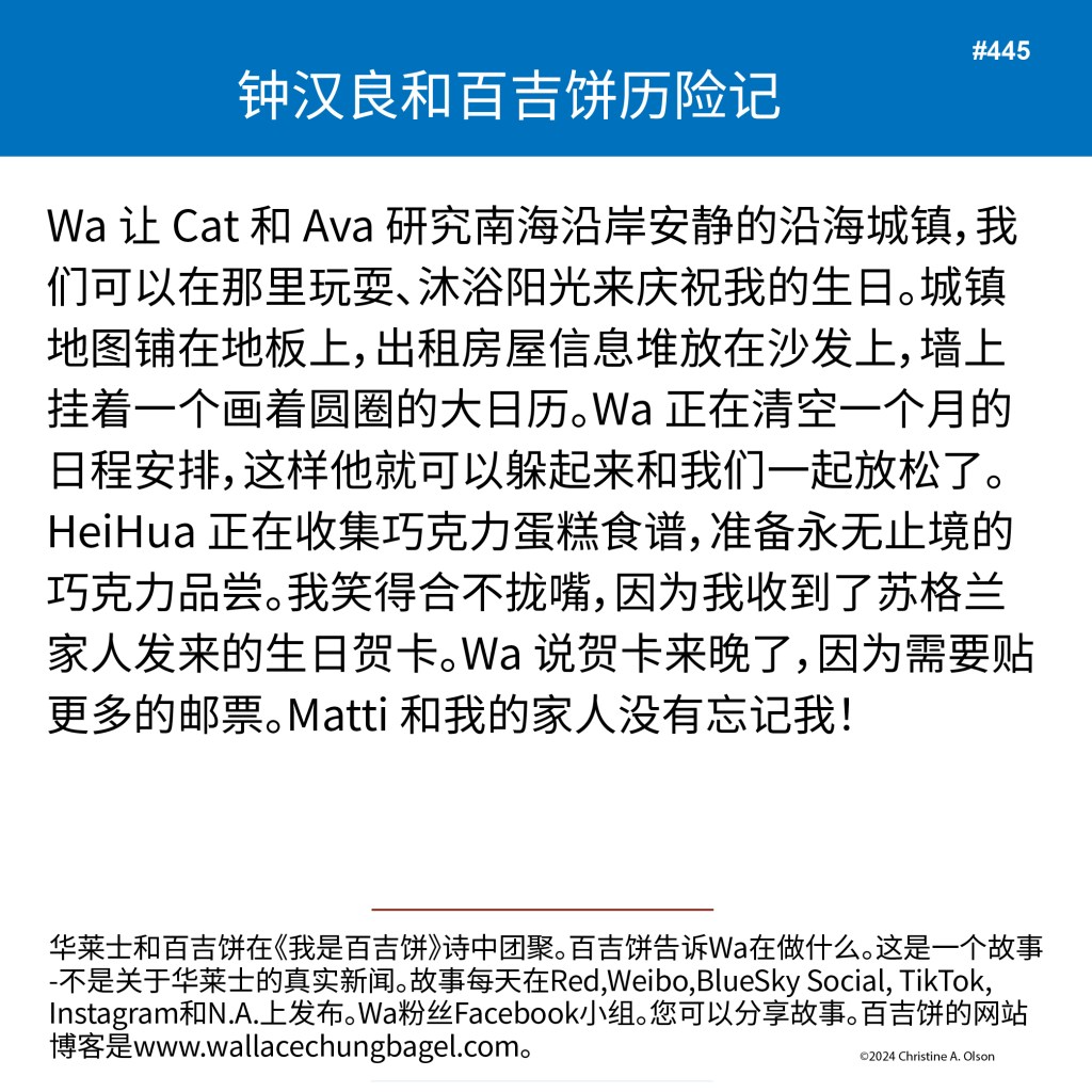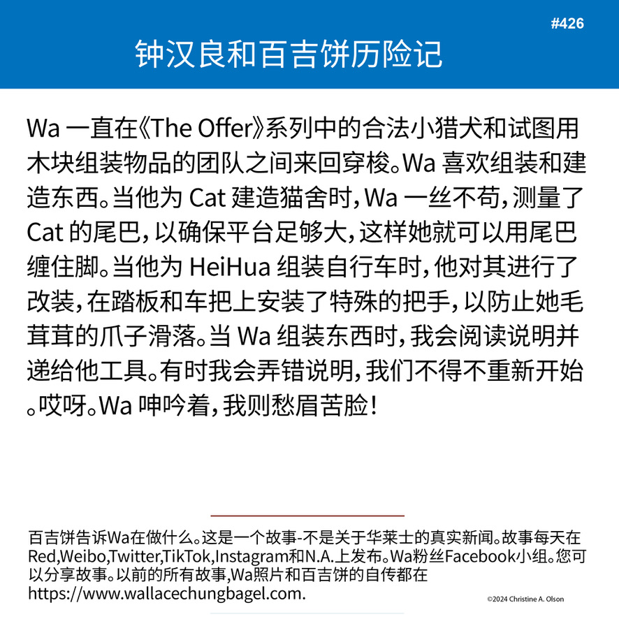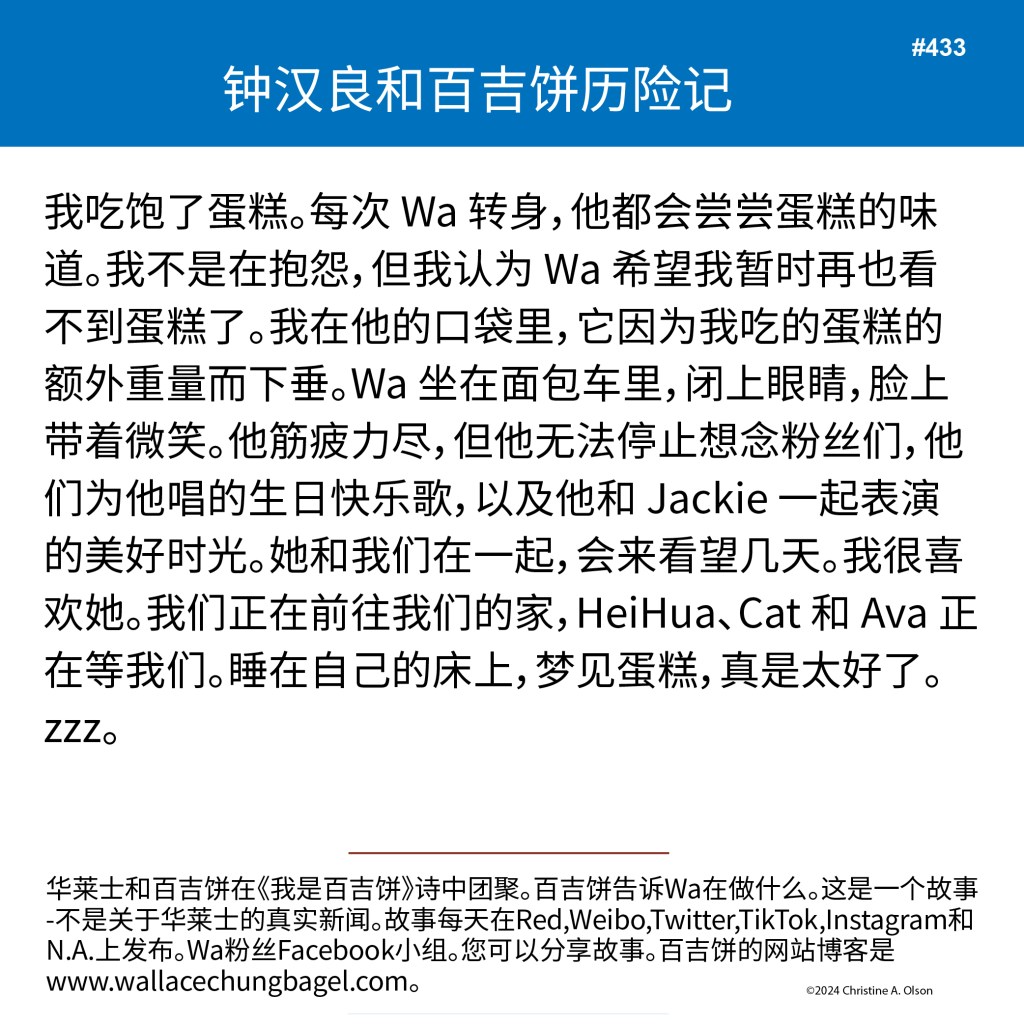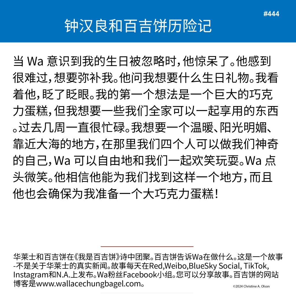 When I began writing the bagel stories, I did not illustrate them with a photograph of Wallace. It was not until story #7 that I began including a photo of Wa that served as the inspiration for the storyline.