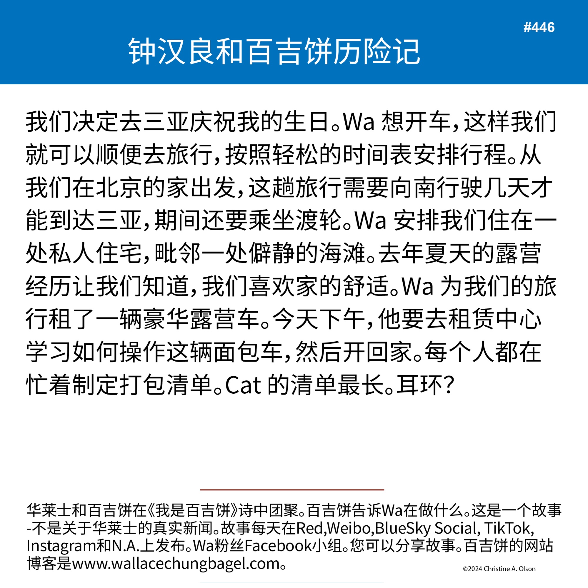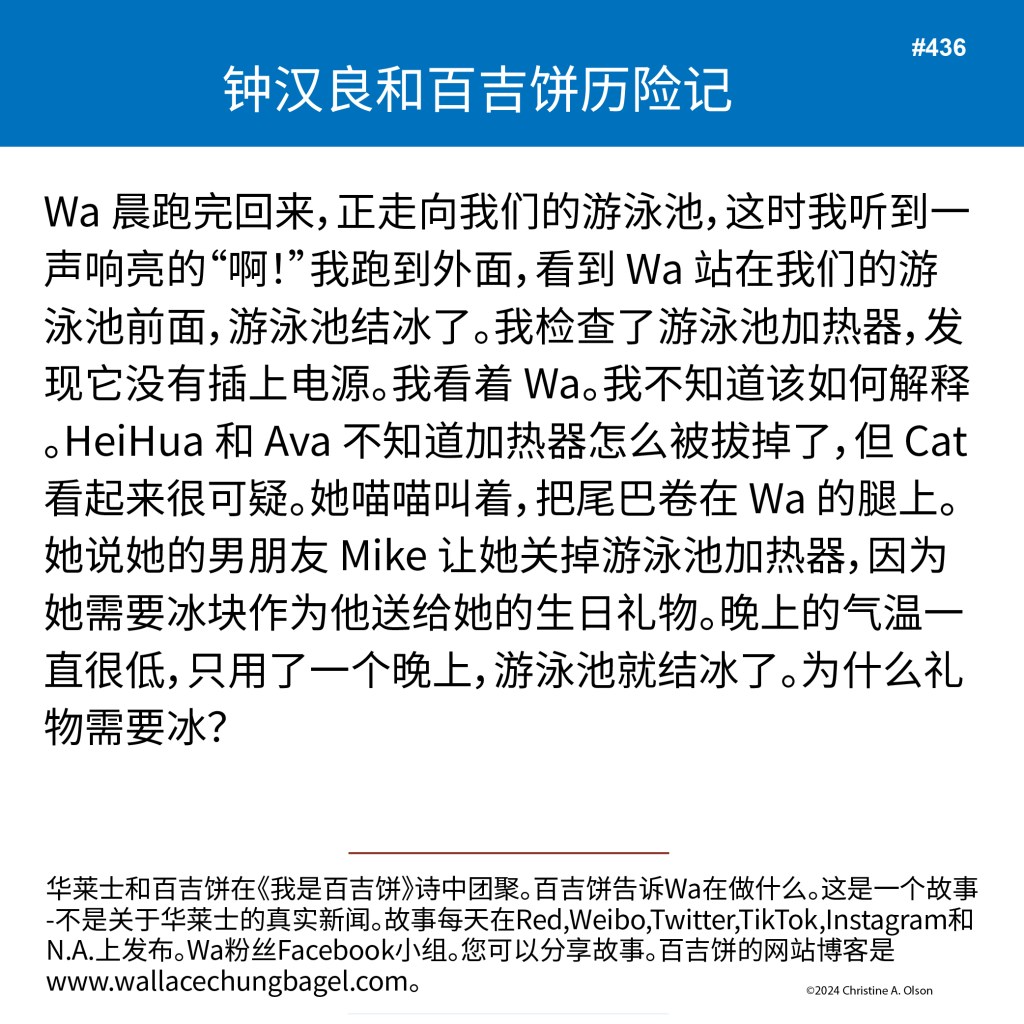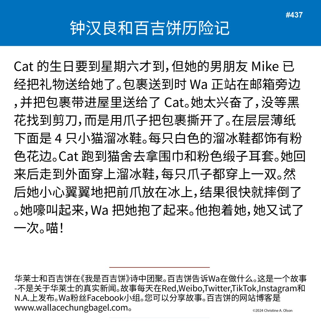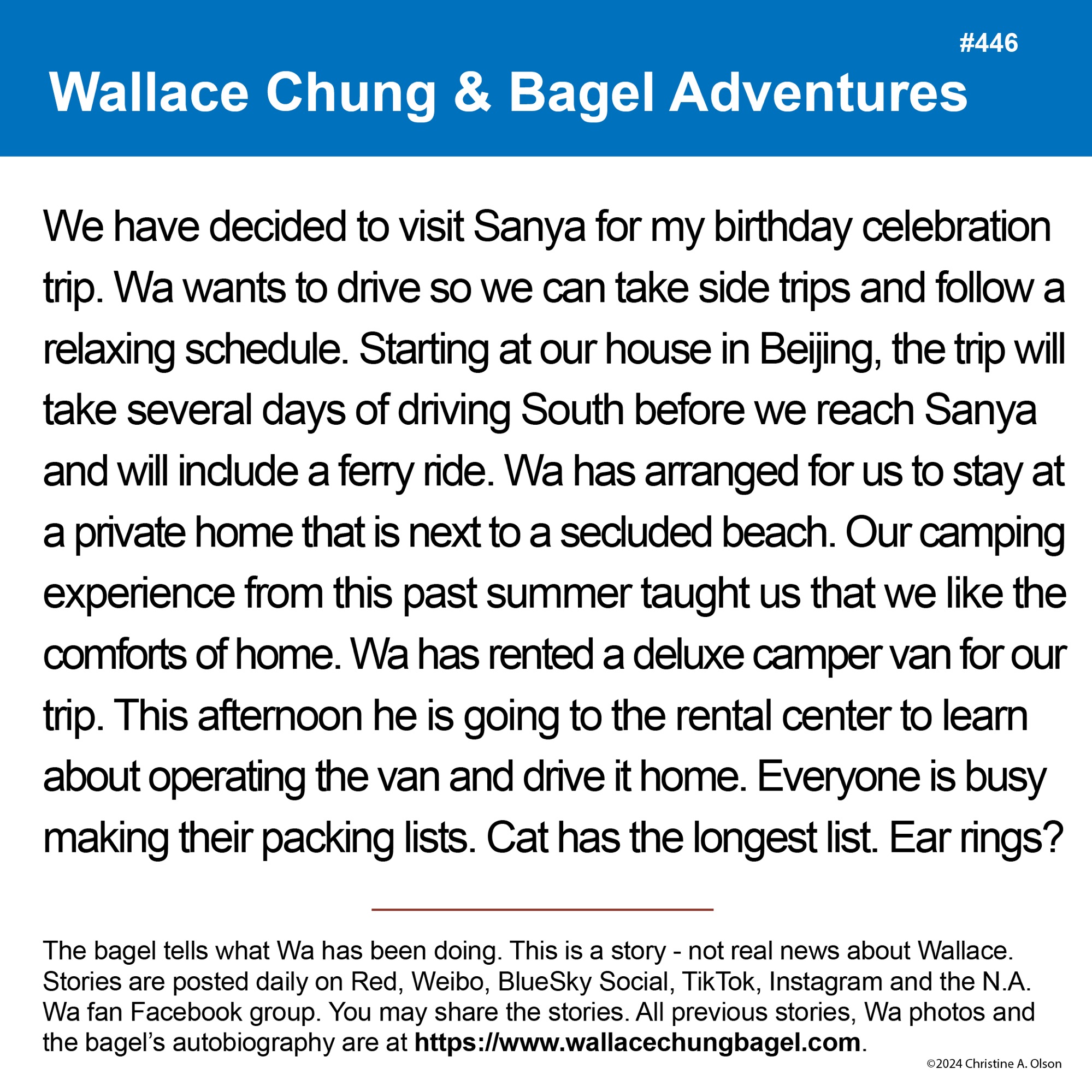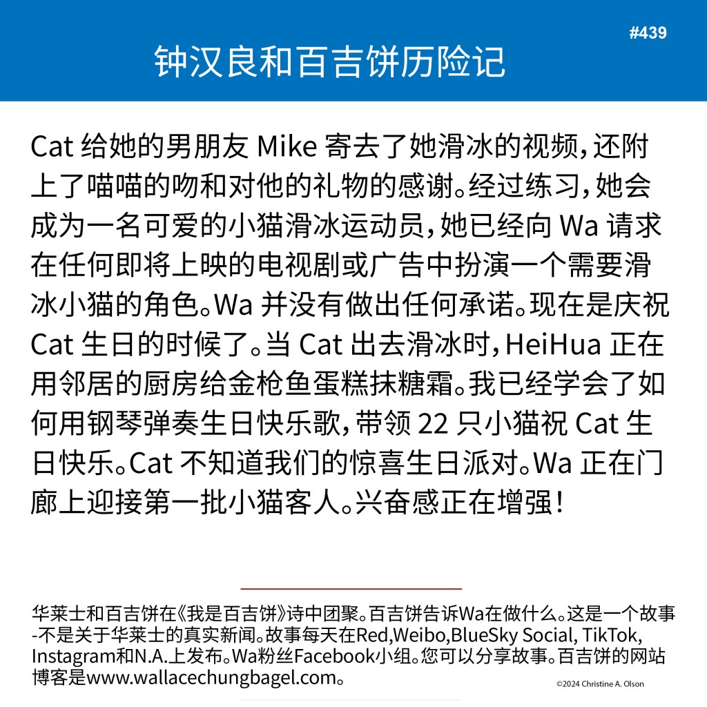 When I began writing the bagel stories, I did not illustrate them with a photograph of Wallace. It was not until story #7 that I began including a photo of Wa that served as the inspiration for the storyline.